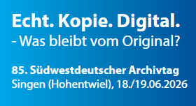 Am 18. und 19. Juni 2026 findet der 85. Südwesteduetsche Archivtag in Singen (Hohentwiel) statt. Das Thema lautet: Echt. Kopie. Digital. – Was bleibt vom Original?
